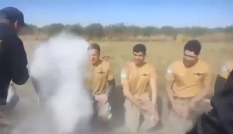 Luego de que un superior les gritara: “¡Paracaidista!”, los soldados respondieron: “Siempre”, tal como se estila en este tipo de eventos. Sin embargo, en esta ocasión, les tiraron cal viva en la boca.