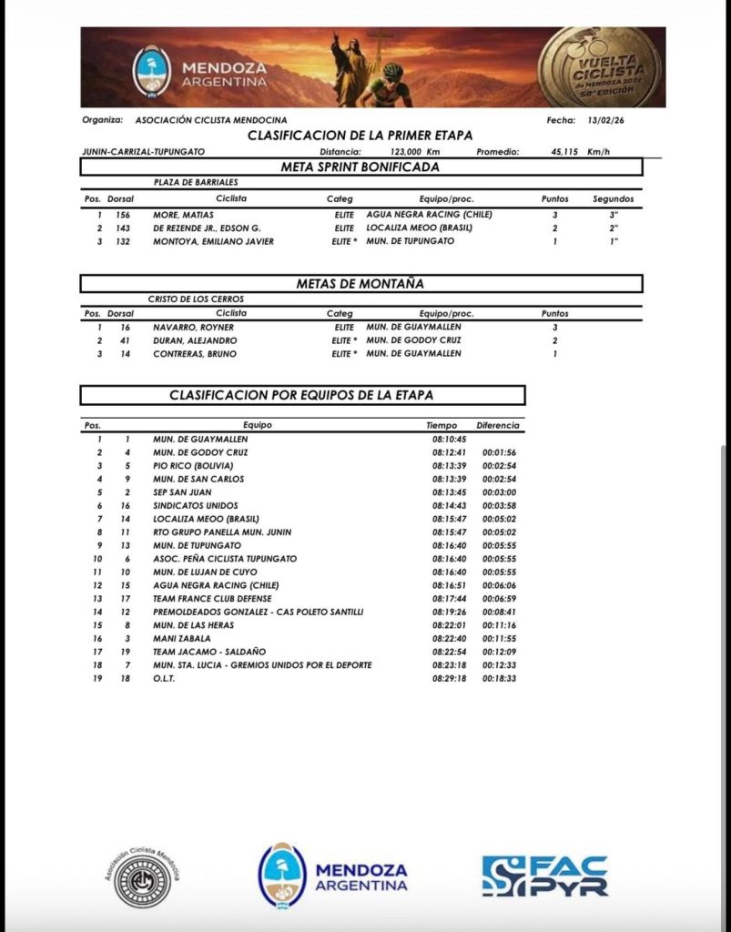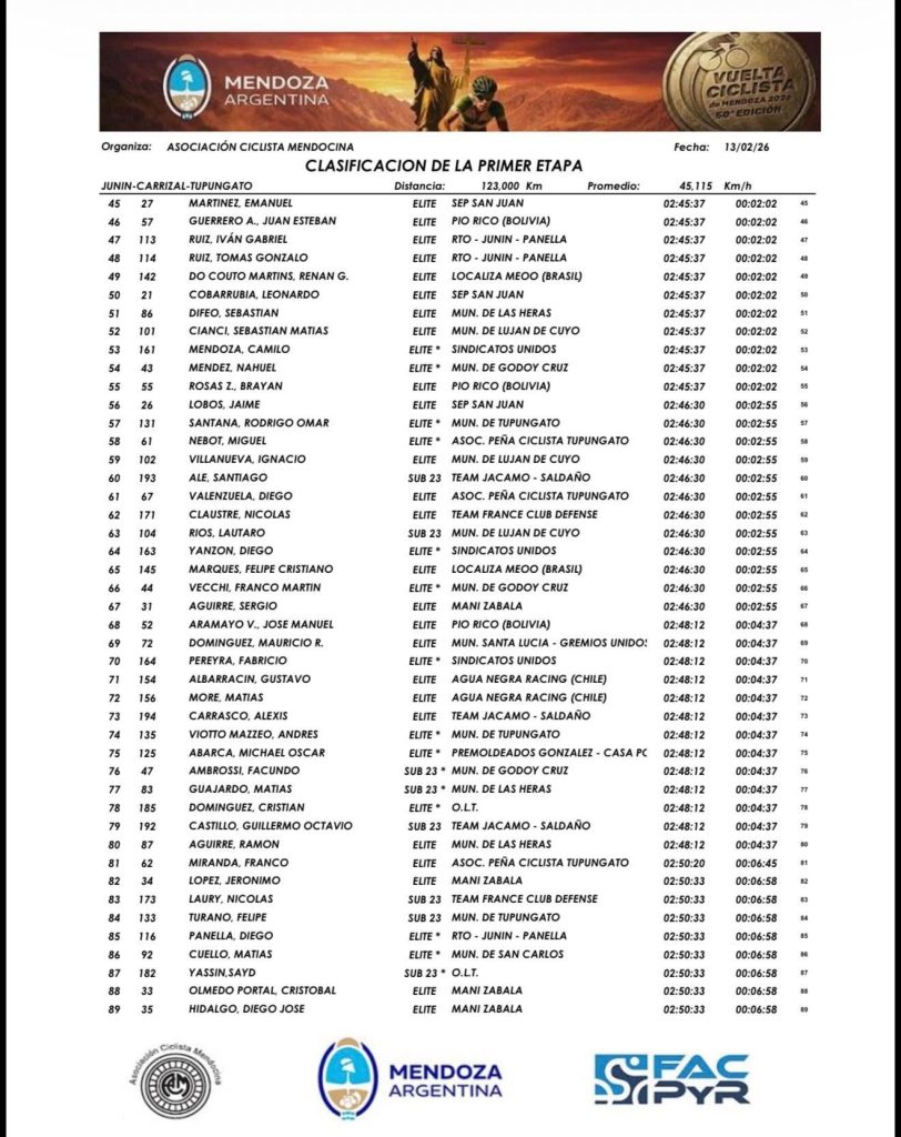 1º Royner Navarro (Mun. Guaymallén) – 2h 44m 50s