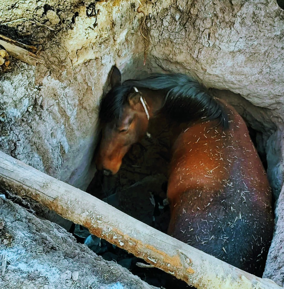 El viernes en horas de la tarde, tras un pedido de auxilio llevado a cabo por vecinos de calle Línea Ancha y calle Riera de Salto de las Rosas, Cañada Seca, hicieron un pedido a los bomberos voluntarios del distrito para que ayudaran a sacar un caballo que había caído en un pozo y que, claramente, no podía hacerlo por sus propios medios.