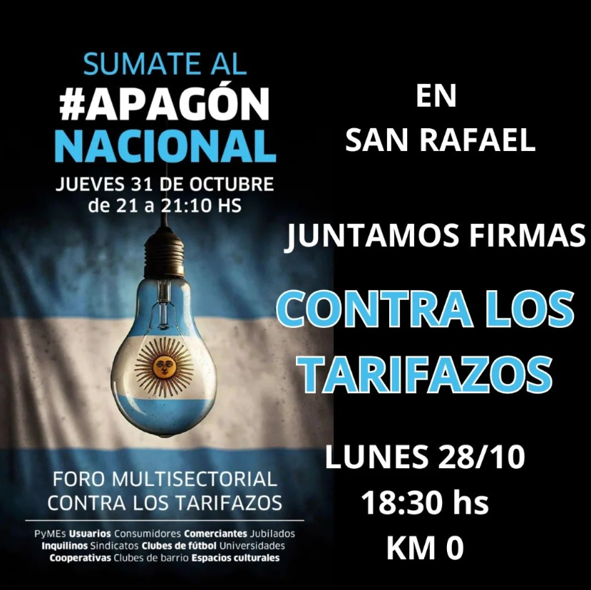 San Rafael se suma a la junta de firmas y apagón nacional contra el aumento de tarifas