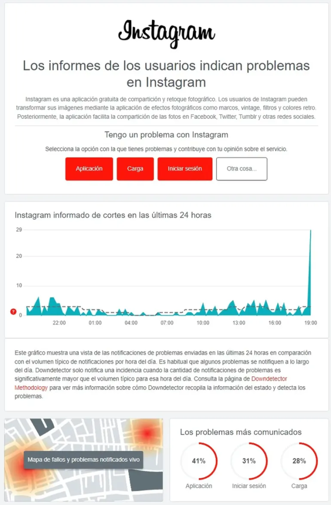 “Los informes de los usuarios indican problemas en Instagram”, indica un análisis. Según Down Detector, los problemas en el servicio de Meta comenzaron durante el atardecer en la Argentina.