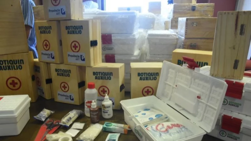 Con respecto a estas últimas y, de acuerdo con las necesidades observadas, se gestionaron desde la Coordinación ART, en conjunto con AMHYS, botiquines de primeros auxilios para las reparticiones evaluadas, que contienen: alcohol en gel antibacterial neutro, agua oxigenada, solución timerosal, paletas de madera, bicarbonato de sodio, cinta adhesiva, banda elástica, venda tipo cambric, paquetes algodón, tijera, gasas esterilizadas, guantes de látex, guantes plásticos, entre otros elementos.