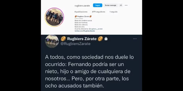 Desde el momento en el que quedaron detenidos los rugbiers que estuvieron involucrados en el asesinato de Fernando Báez Sosa, salieron a la luz varias cuentas en Twitter, Facebook e Instagram donde apoyan a los acusados. Una de ellas es “Rugbiers Zárate”, que reclama: “Basta de condena social, de mentiras, de violencia y de odio”.