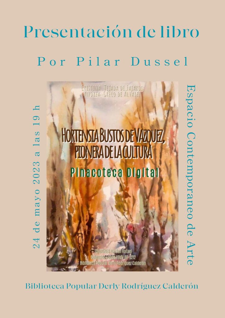 El libro “Hortensia Bustos de Vázquez, pionera de la cultura” que se presentará este miércoles da a conocer una muestra pictórica muy interesante que posee la biblioteca popular Derly Rodríguez Calderón, que había sido donada por Hortensia Bustos de Vázquez en 1994. La reconocida historiadora Andrea Greco, una de las redactoras, dialogó al respecto con FM Vos (94.5) y con Diario San Rafael.