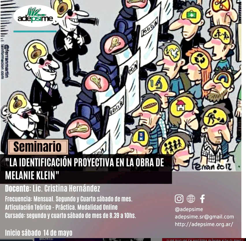 Añadió que “ahora estamos promocionando un nuevo seminario que está por comenzar el 14 de mayo: ‘La identificación proyectiva en la obra de Melanie Klein’, autora que proviene de la escuela inglesa. Este seminario lo va a dictar la licenciada Ana Cristina Hernández que es socia honoraria de nuestra institución, profesional de amplia trayectoria”.