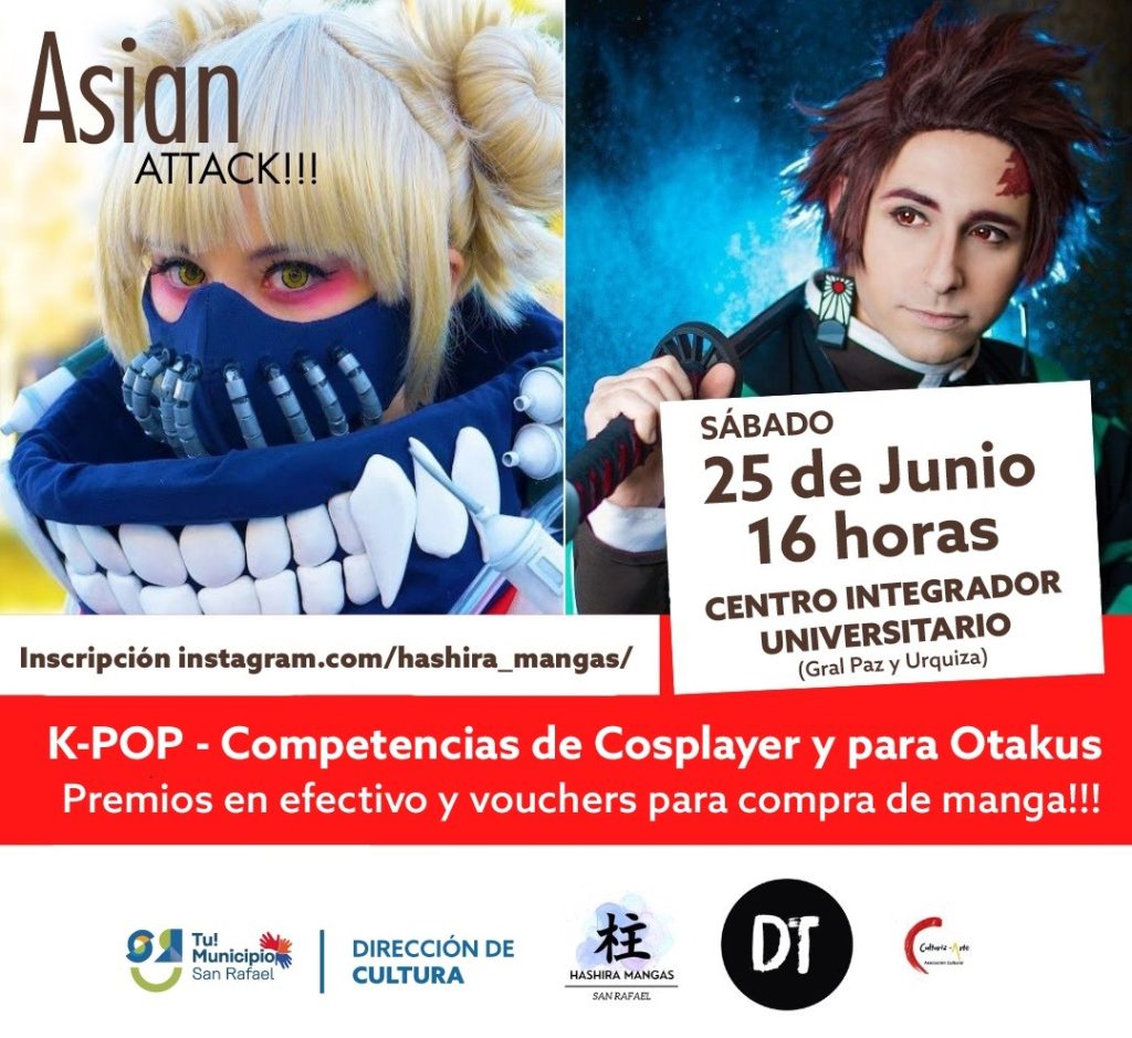 “Asian Attack es un evento familiar libre y gratuito para todos las personas que quieran participar o estar de espectador del mismo. Para la inscripción gratuita del mismo, escribir al Instagram: https://www.instagram.com/hashira_mangas”, indicaron.