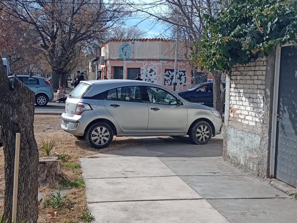 A consecuencia del leve impacto, el Chevrolet saltó la acequia y terminó casi contra la pared de una de las viviendas de la esquina.