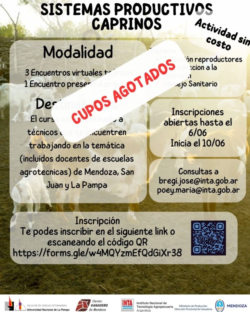 Organizada por el Instituto Nacional de Tecnología Agropecuaria (INTA), se llevará adelante una interesante capacitación en sus instalaciones sobre “Sistemas productivos caprinos”. Paula Diez, quien forma parte de la organización, habló al respecto con FM Vos (94.5) y con Diario San Rafael.