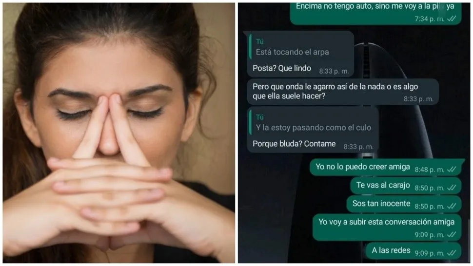 «Porque mi bisabuela está tocando el arpa», fue la frase elegida, pero la amiga no entendió la expresión y le dio una desopilante repuesta. «Yo no te puedo creer amiga. Sos tan inocente», le replicó la chica y le advirtió que iba a subir el chat a las redes.
