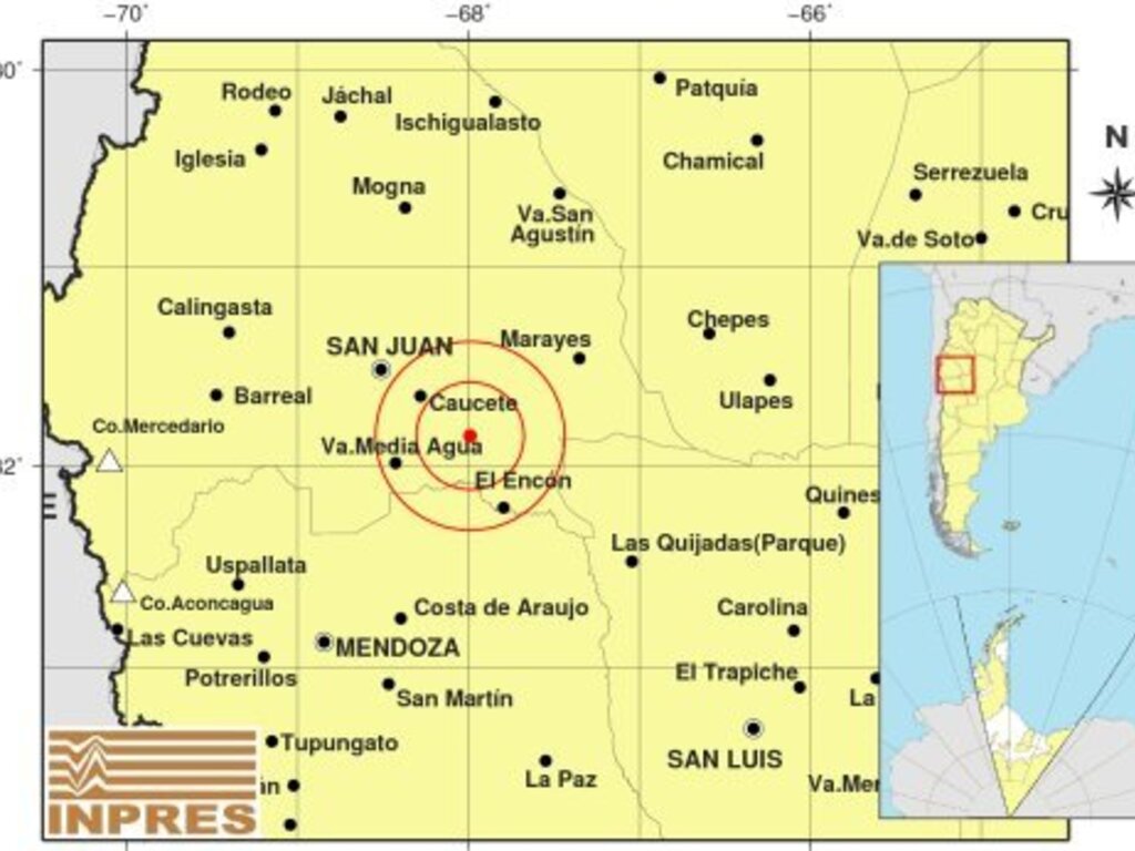 El organismo informó que el epicentro se ubicó cerca de Caucete, 60 kilómetros al sureste de la capital de San Juan y 140 kilómetros al noreste de la Ciudad de Mendoza.