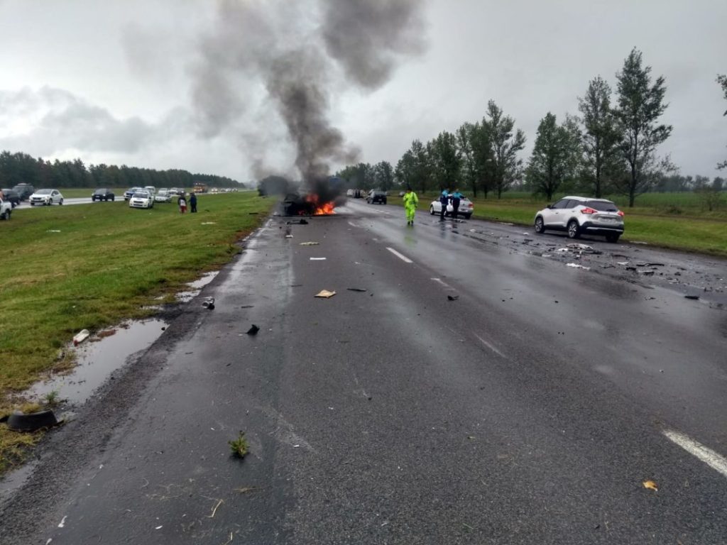 Terrible choque múltiple en Ruta 9: un auto se incendió y hay tres muertos