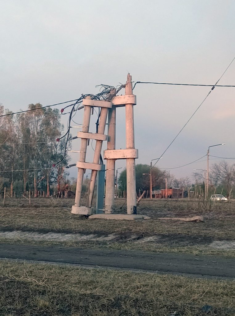 El tornado, que golpeó al distrito en apenas quince minutos, dejó daños visibles por todas partes. “Las plantas daban vueltas, el viento iba hacia el norte y de pronto hacia el sur”, relató Guizardo, quien comparó el fenómeno con un tornado por la fuerza y la imprevisibilidad de los vientos. La situación se agravó porque muchas líneas eléctricas fueron dañadas por árboles caídos y postes derribados, aunque según el testimonio del representante, “el cableado de alta resistencia que se instaló en algunos sectores logró soportar parte del impacto”. En medio de la emergencia, la comunidad ha demostrado solidaridad. Equipos municipales de San Rafael, Vialidad provincial, Defensa Civil de General Alvear y Villa Atuel trabajaban ayer contrarreloj para reparar los daños. Sin embargo, la desolación es evidente. “Hay ramas, escombros y restos por todos lados. Los negocios están cerrados porque no hay energía. Es un panorama muy complicado”, señaló.