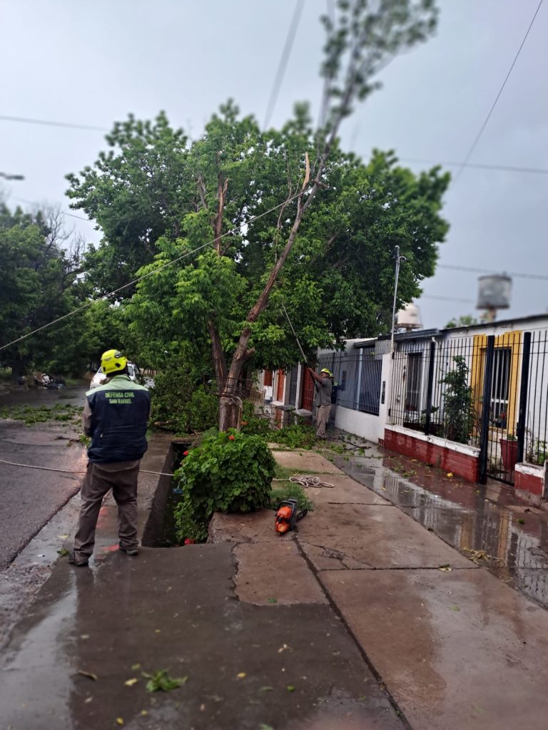 La tormenta de esta tarde afectó a gran parte de la geografía de San Rafael. Afortunadamente no se registraron precipitaciones graniceras significativas, pero si el temporal trajo fuertes vientos que generó caídas de postes y árboles.