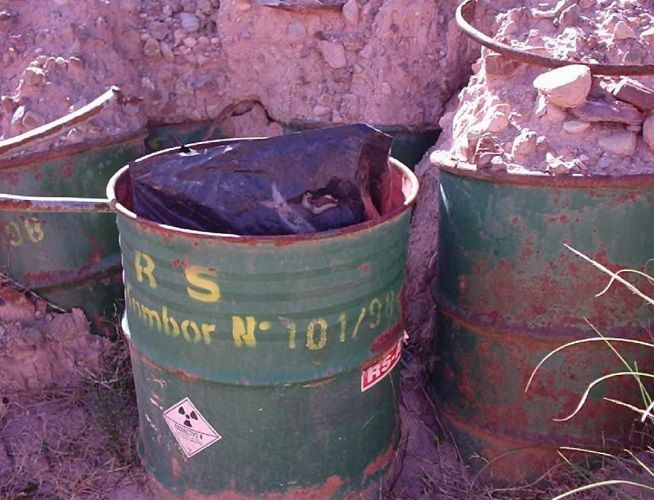 A ello se suma un problema crítico: 5.223 tambores de 200 litros con material radioactivo y alto contenido de uranio, trasladados desde Córdoba y enterrados en trincheras cubiertas con colas de mineral.