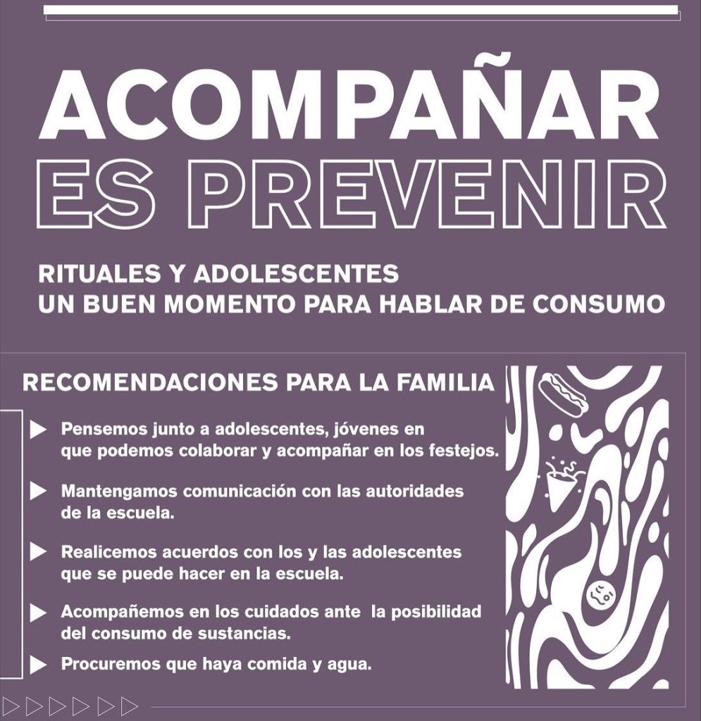 “Desde el equipo de la Dimensión Educación compartimos la campaña UPD Acompañar es Prevenir: Rituales y adolescentes un buen momento para hablar de consumo”, explicaron desde el espacio.