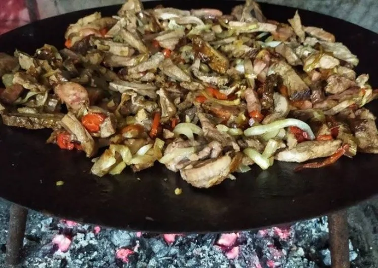 3) Colocar los churrascos a fuego medio en el disco. Agregar sal y pimienta a gusto y si se quiere, un poco de pimentón. Sellar de ambos lados por 15 minutos.