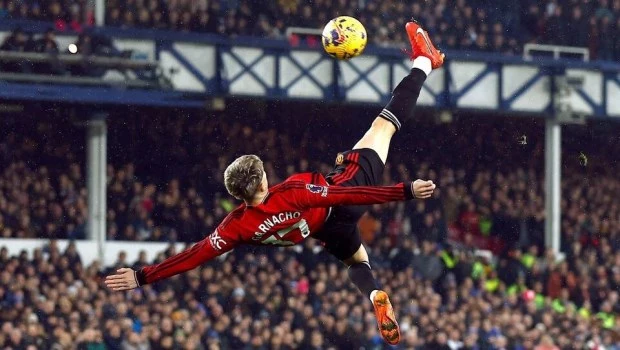 Se trata de una chilena realizada por el argentino cuando su equipo, el Manchester United, goleó 3-0 al Everton por la decimotercera fecha del certamen.