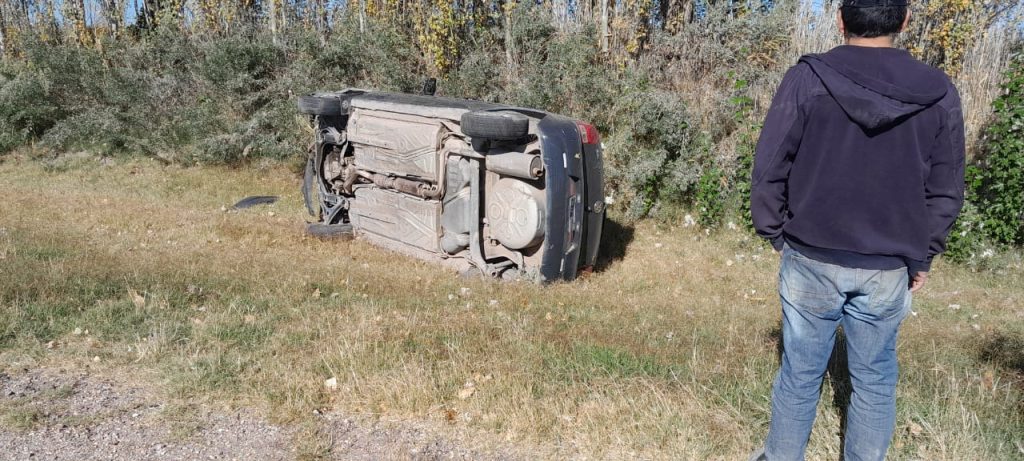 El siniestro se produjo cerca de las 15 de hoy en la denominada «curva de Bernués» cuando el conductor de un VW Gol perdió el dominio del mismo, el vehículo salió de la cinta asfáltica y terminó volcando en la banquina.