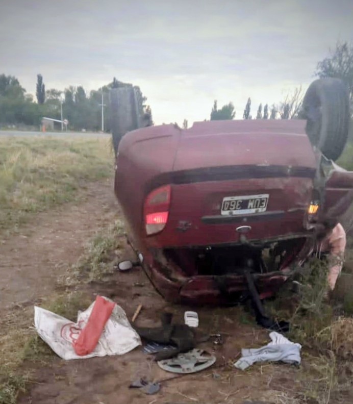 Según el informe policial, el hecho ocurrió alrededor de las 6:05 cuando un automóvil Ford Ka, color bordó , que circulaba de este a oeste luego de salir del salón de eventos La Santina, perdió el dominio y volcó, quedando con las cuatro ruedas hacia arriba.