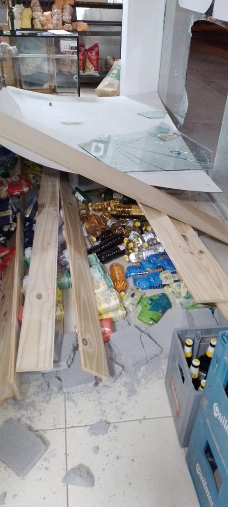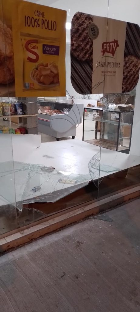 Un móvil policial se encontraba patrullando, cuando al llegar a avenida Alberdi y calle Pringles divisan a unos sujetos sustrayendo elementos del interior de un MiniMarket, que tras una persecución los alcanzan a uno metros por calle Pringles, logrando la aprehensión de dos menores de edad. Arriba la propietaria quien ingresa al local por la parte trasera constatando el faltante de un parlante, fiambre sin abrir, vinos, fernet, y dinero en efectivo. Se traslada a los menores a la comisaría UPANA, donde se los individualiza. Se procede al secuestro de lo que llevaba en su poder siendo una mochila color gris con cuatro bolsas de galletas sueltas, una gomera y una piedra.