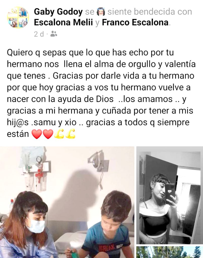 En el 2020 Matías fue diagnosticado con leucemia y en el 2021 sufrió algunas recaídas. Finalmente, hizo un tratamiento de un mes en el hospital Notti, para la posterior cirugía en Córdoba que tuvo lugar esta semana. Si bien aún está con algo de fiebre, ese es un síntoma propio de este tipo de recuperaciones. “Él recibió una médula nueva, así que para mí tuvo leucemia pero ya no la tiene”, aseguró Gabriela y agregó que igualmente, se le ruega a Dios que “esa médula agarre pronto, así empieza a generar sus glóbulos blancos, plaquetas que no tiene (hoy está neutropénico)”.
