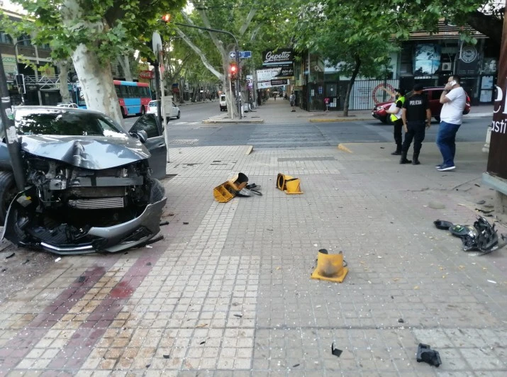 En la mañana de este jueves se produjo un accidente de tránsito en las calles Perú y Las Heras de Ciudad Mendoza. El conductor de un Chevrolet Cruze se estampó contra un poste. Estaba alcoholizado.