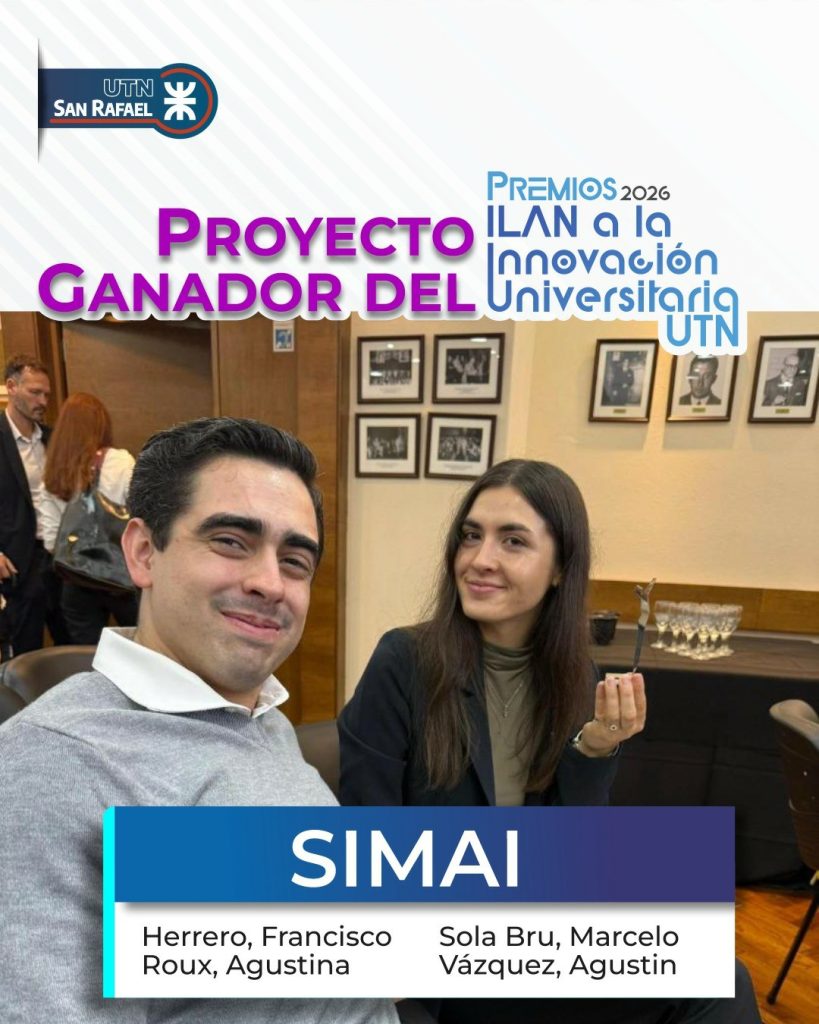 Un equipo de estudiantes y profesionales vinculados a la UTN Regional San Rafael logró un importante reconocimiento internacional al obtener uno de los premios ILAN a la innovación universitaria 2026 con su proyecto SIMAI, un sistema inteligente de monitoreo agroclimático orientado a mejorar la toma de decisiones en la producción agrícola.