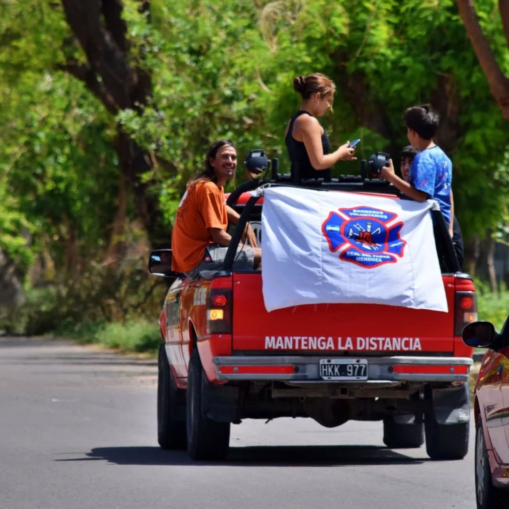 Gastón iba al frente en la camioneta de los Bomberos de Real del Padre y junto a ellos una caravana de automóviles particulares se sumaron para recorrer el pueblo.
