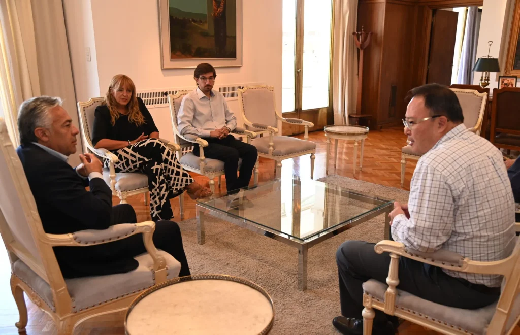 En la Casa de Gobierno, el gobernador Alfredo Cornejo, junto a la titular de ProMendoza, Patricia Giménez, recibió a Alejandro Zhang, director ejecutivo de ZMG, subsidiaria de la marca china de maquinaria pesada LiuGong en Argentina.