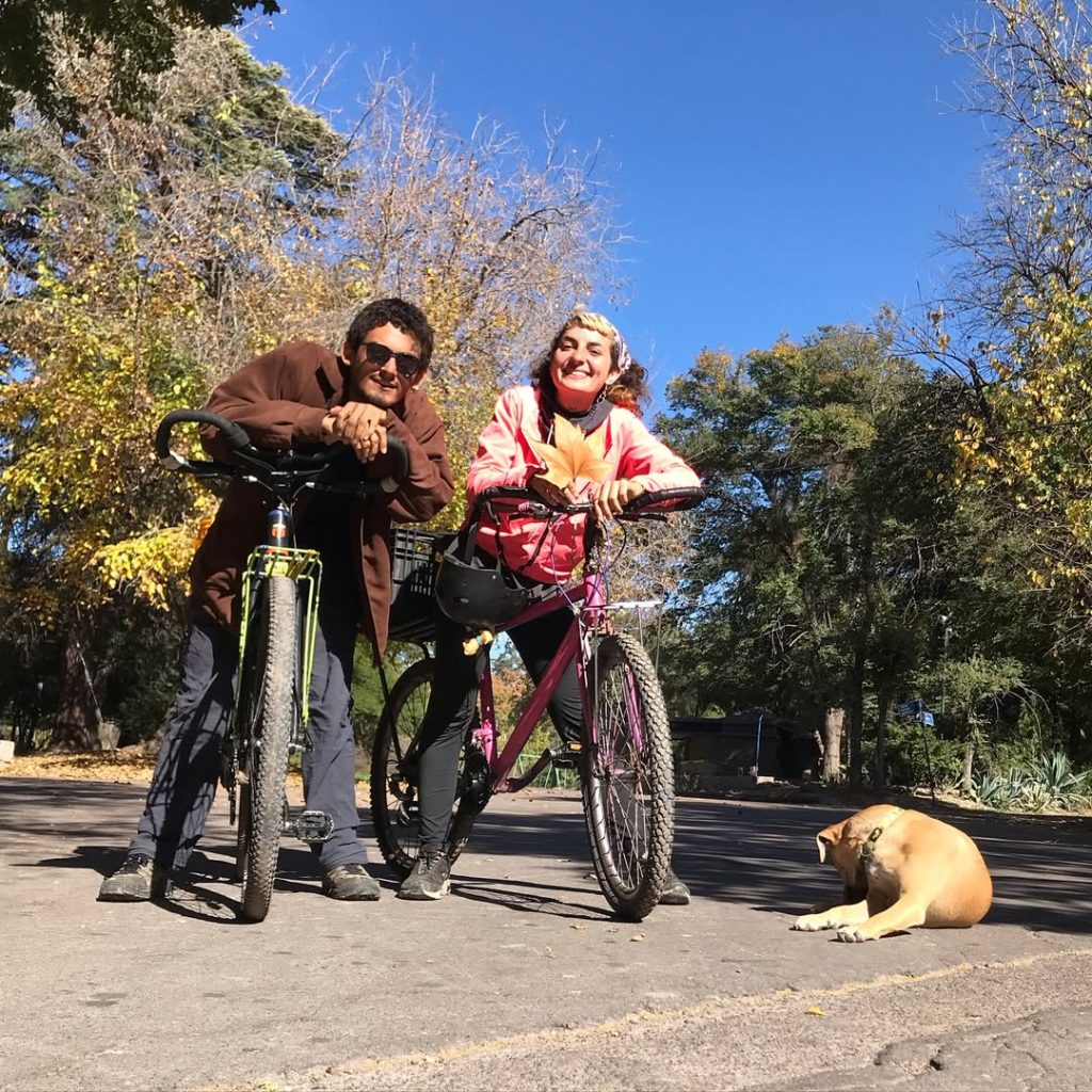 Desde hace un tiempo están parando en Mendoza con días de “descanso y organización” preparándose para la próxima etapa. Actualmente se los puede ver recorriendo San Rafael en sus dos bicis y con la infaltable Jengibre.