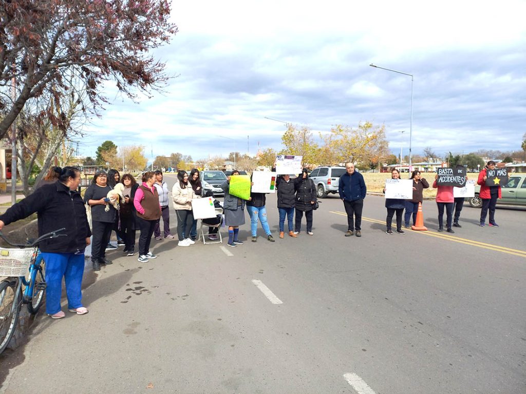 El accidente del martes entre la camioneta y la moto, obligó a que el conductor del vehículo menor, fuera trasladado al hospital Schestakow y que quedara internado. El hecho fue la causa de esta manifestación que tuvo lugar hoy viernes a partir de las 11. Los vecinos mostraban carteles pidiendo a los conductores bajar la velocidad y circular con mayor precaución.