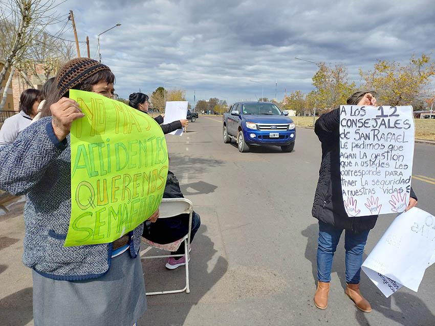 Alejandra de Moreno, una de las vecinas, expresó a través de Diario San Rafael: “Lo que estamos reclamando es un ordenador vial, un semáforo, rotonda, lo que sea, lo más urgente posible porque realmente esto no da para más. Tuvimos un accidente muy grande el martes y el chico está muy mal, eso nos pone mal a todos; pasan muchísimos accidentes pero esto tiene que parar alguna vez, no se puede seguir así”. “No todos saben quién tiene prioridad y cuando lo saben no lo respetan tampoco”, añadió y aseguró que además, hay pérdidas frecuentes de agua que son arregladas pero que pocos días después vuelven a romperse. “Yo creo que en el momento que hicieron esto, deberían haber planeado algo para que no ocurra lo que está ocurriendo. Nosotros vivimos donde está justo uno de los cruces, y no se puede salir de las casas. Las 24 horas es así. Queremos que quien le corresponda nos venga a dar una solución”, destacó. Según documentación que mostró, desde el año 2014 cruzan pedidos a funcionarios municipales y provinciales. “Cuando hay un accidente, se para un policía unas horas, después se van y listo”, criticó y advirtió que el horario de salida escolar es muy serio, ya que a metros de allí está la escuela Sáez.