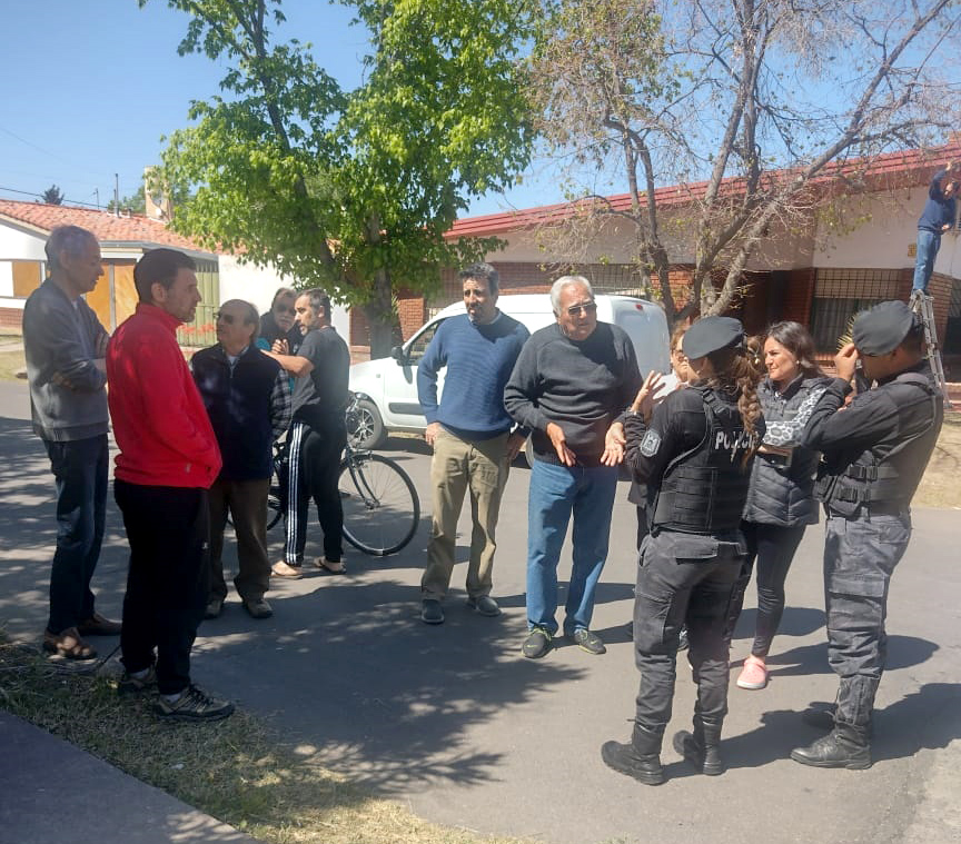 Minutos después de la concentración, dos móviles se hicieron presente en el lugar para constatar las denuncias de los vecinos por los ataques a la propiedad que Través realizó durante la noche y la madrugada del jueves en diferentes propiedades, como rotura de vidrios, lámparas y cables de telefonía y televisión. Luego de identificar al agresor se le dio intervención al Ayudante Fiscal de Comisaría 32 en busca de que el Estado brinde una solución a los más de 10 vecinos.