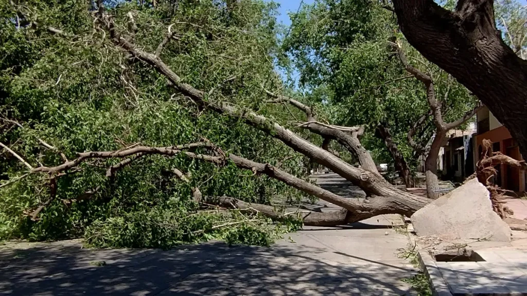 Las corrientes del Zonda empezaron a sentirse el sábado en Rama Caída y se fueron incrementando, comenzando sus lógicas consecuencias. “El día sábado tuvimos un incendio grande en la calle Artero y La Correína (al límite con Salto de las Rosas). Casi afectó una casa, pero gracias a Dios entre los vecinos y bomberos se pudo solucionar, y después, lo que fue sábado a la noche y domingo todo el día, hubo una gran cantidad de árboles caídos más que nada en la calle Ejército de Los Andes, una de las más transitadas. Estuvimos casi hasta las 9 de la noche trabajando con personal municipal y Defensa Civil para despejar las calles, pero eran árboles de gran tamaño que ocasionan muchos daños, porque el viento, como corre en esa dirección, es donde más afecta porque el tendido eléctrico va de ese lado, entonces se corta el suministro de energía”, dijo Díaz.