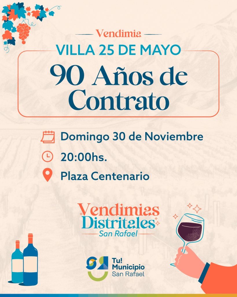 Titulada “90 años de contrato”, la Villa 25 de Mayo llevará adelante este fin de semana su Fiesta Distrital de la Vendimia. Paula Augusto, delegada de aquel distrito, brindó detalles al respecto a través de FM Vos (94.5) y de Diario San Rafael.