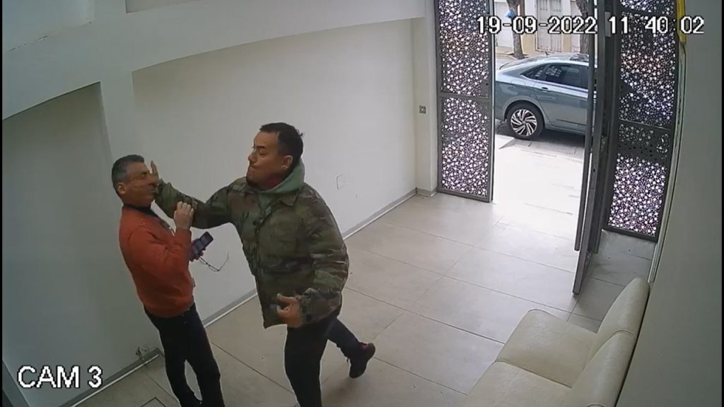 Dos hombres discutiendo y luego uno de ellos propinándole una violenta golpiza al otro, fueron captados por la cámara de seguridad de lo que es el ingreso a un multiespacio coworking ubicado en Patricias Mendocinas al 200 de General Alvear, donde la víctima tiene las oficinas de su empresa dedicada a la tecnología para el agro y ganadería.