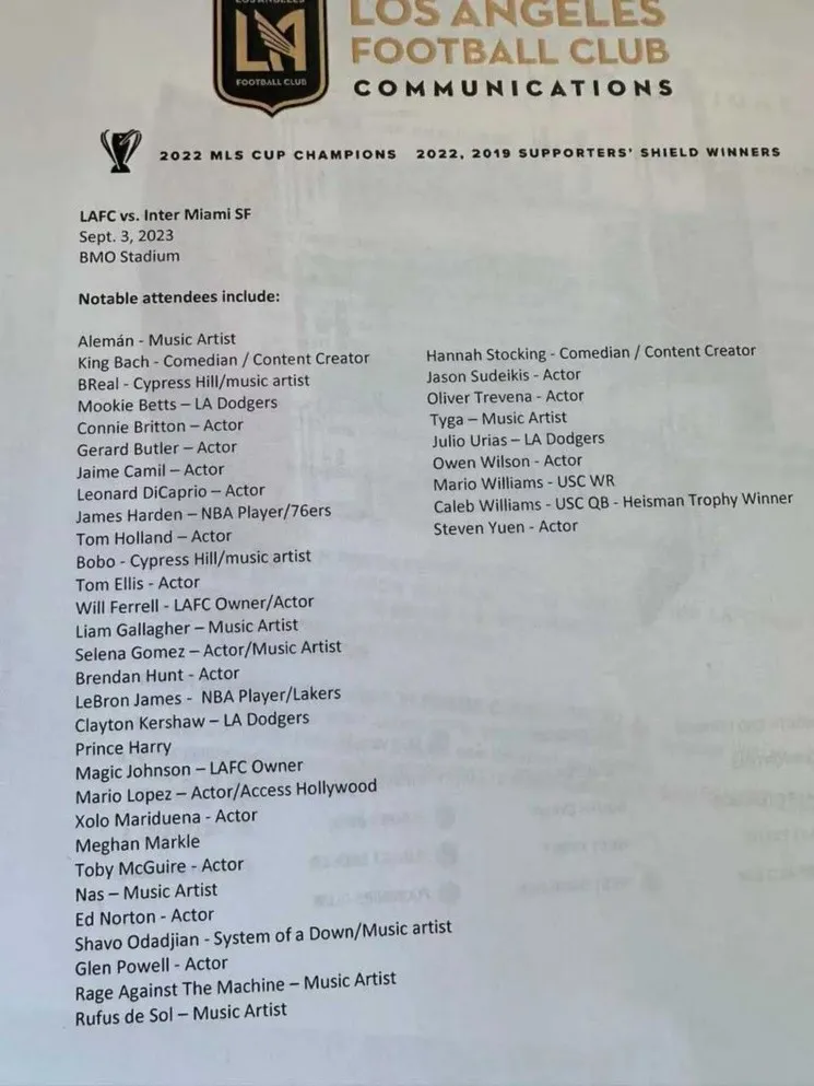 El equipo angelino había publicado horas antes del encuentro ante el conjunto liderado por el «10» argentino un listado de los “asistentes notables”, donde había, al menos, una veintena de celebridades.