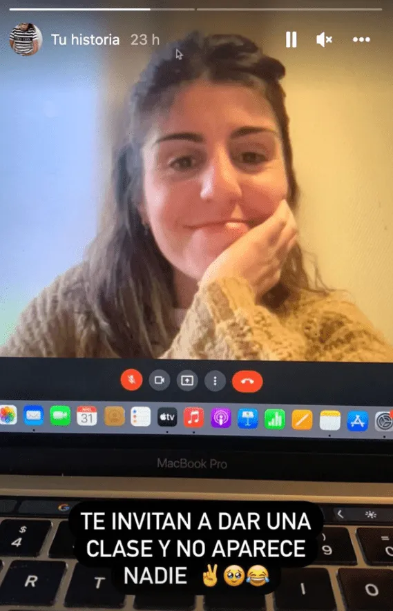 En primer lugar, Ahumada mostró en su cuenta de Instagram, a través de una historia, el encuentro virtual sin alumnos que vivió el miércoles pasado.