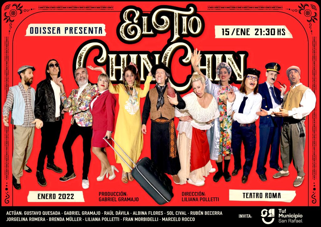 El artista expresó que llegan expectantes y felices, teniendo en cuenta el éxito del año pasado, que aún está “muy fresco”. “Debutamos en este enero tan caluroso y lleno de turistas el sábado 15 de enero a las 21.30 en el teatro Roma. Es una propuesta para toda la familia, una comedia desopilante con muchos actores en escena, once actores locales”, remarcó. Es que bajo la dirección de Liliana Polleti (autora del guion), actúan –además de Gramajo– Jorgelina Romera, Rubén Becerra, Marcelo Roco, Gustavo Quesada, Brenda Müller, Sol Cival, Raúl Dávila, Albina Flores, Fran Morbidelli y la propia directora. “Es una obra para toda la familia, una obra local muy costumbrista. El tío Chinchín fue un personaje de San Rafael, así que lo traemos a la memoria, le hacemos una especie de homenaje a una persona que supo tener muchísimos conocidos, muchísimos amigos y lo refrescamos en esta obra”, dijo Gramajo.