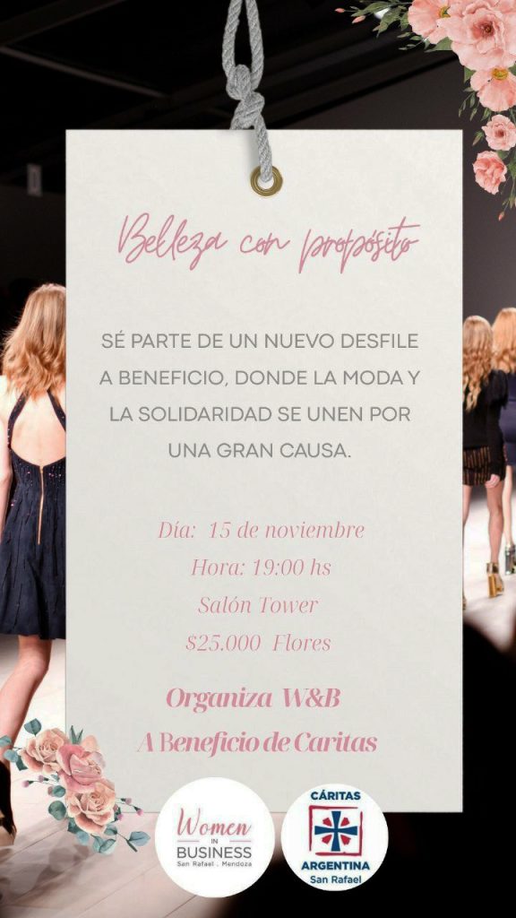 Cabe decir que la entrada tiene un valor de 25 mil pesos, y la idea es que con todo lo que se recaude ese día, desde Women and Business compre insumos que servirán más tarde para realizar cursos de costura en el espacio de Cáritas. “Necesitamos adquirir insumos como máquinas de coser y todo lo que corresponde a la costura, para que después desde Cáritas se puedan brindar talleres, y darle herramientas a la mujer que le sirvan para crear su propia prenda, crear un bolso, todo lo que tiene que ver con la costura y que pueda sentirse realizada, y también quizás comenzar un emprendimiento”, resaltó De Vicente.